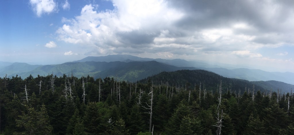 Day 2 started out a little lazy as we only wanted to see one main sight, Clingman’s Dome, and to be honest I wanted a more relaxing day. Clingman’s Dome is a half-mile uphill climb on a paved path. The path, although completely paved, is described by some as moderate to difficult. I would definitely peg it as a moderate climb which destroyed my idea of a lazy day. My word of advice on this trail is to pace yourself and do not let the hike intimidate you. We took several breaks, also taking a decent amount of time at the top to rest up. Embarrassingly/Amazingly enough we were passed by a couple in there mid 80s, slow and steady was their approach and they did not rest until the very top. Perfect tortoise and the hare image here. The view at the peak is more than worth the trip and really helps a person visualize the vastness of where they are.