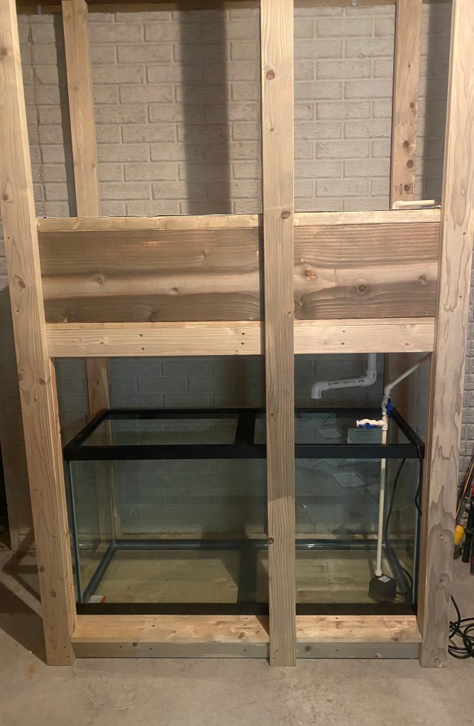Well after what seems like forever, I have finally set the tank! The tank is actually quite heavy so it took some time to slide it into place and ensure it was relativley centered in the stand. Funny enough, I just recently realized I left all of the stickers on the tank and at this point I don’t really care, I am just so excited I got to this point!